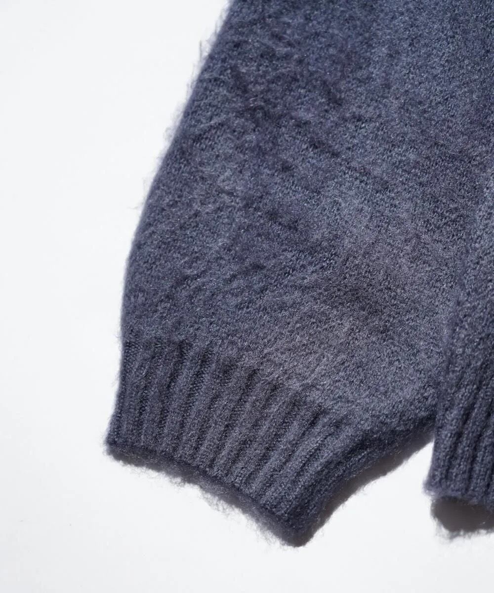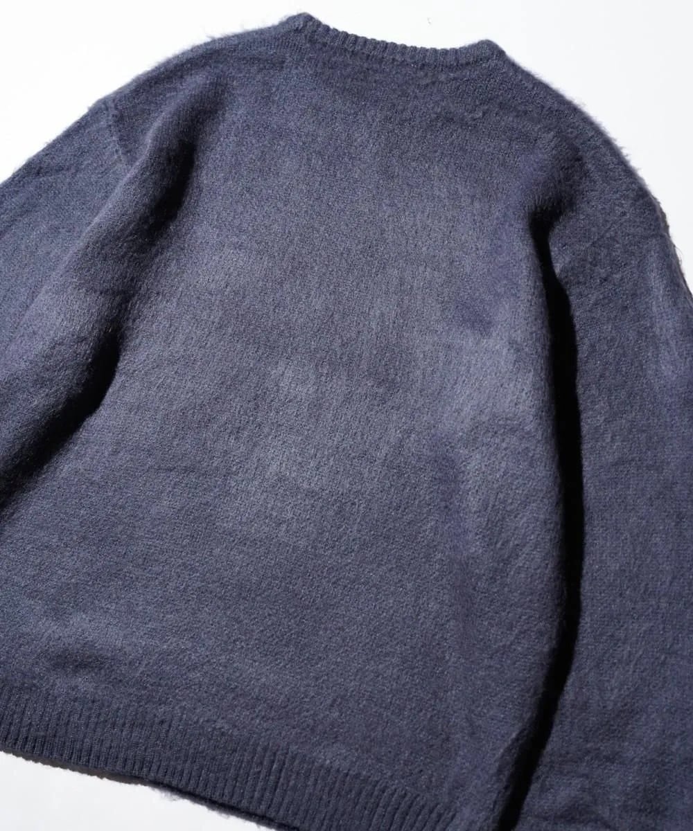 モヘア調アクリル糸で古着の様な風合いを再現。