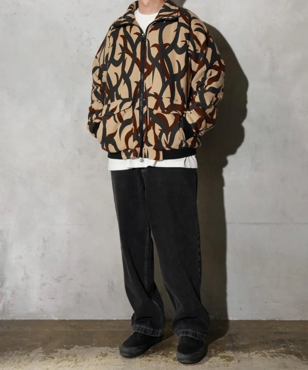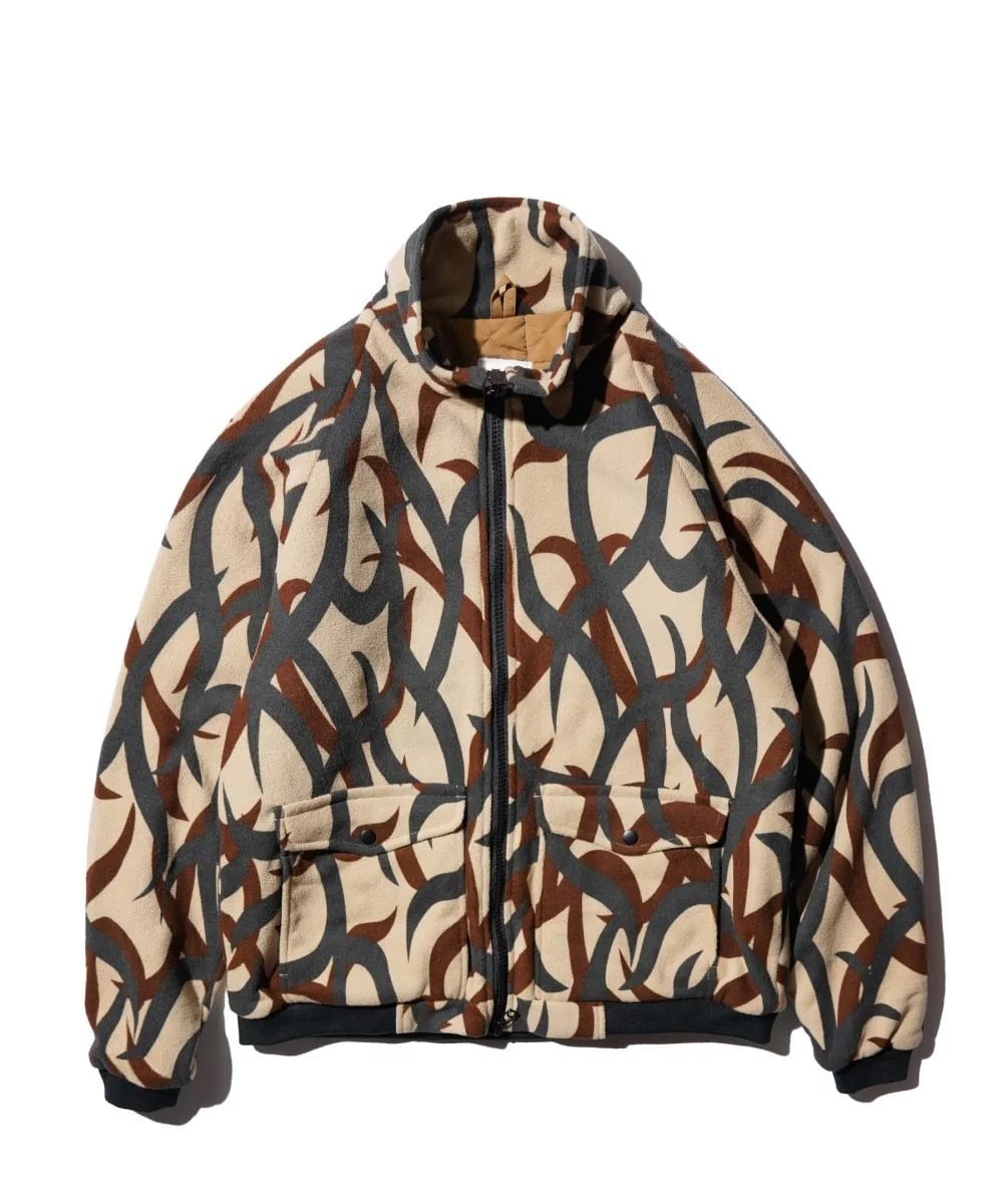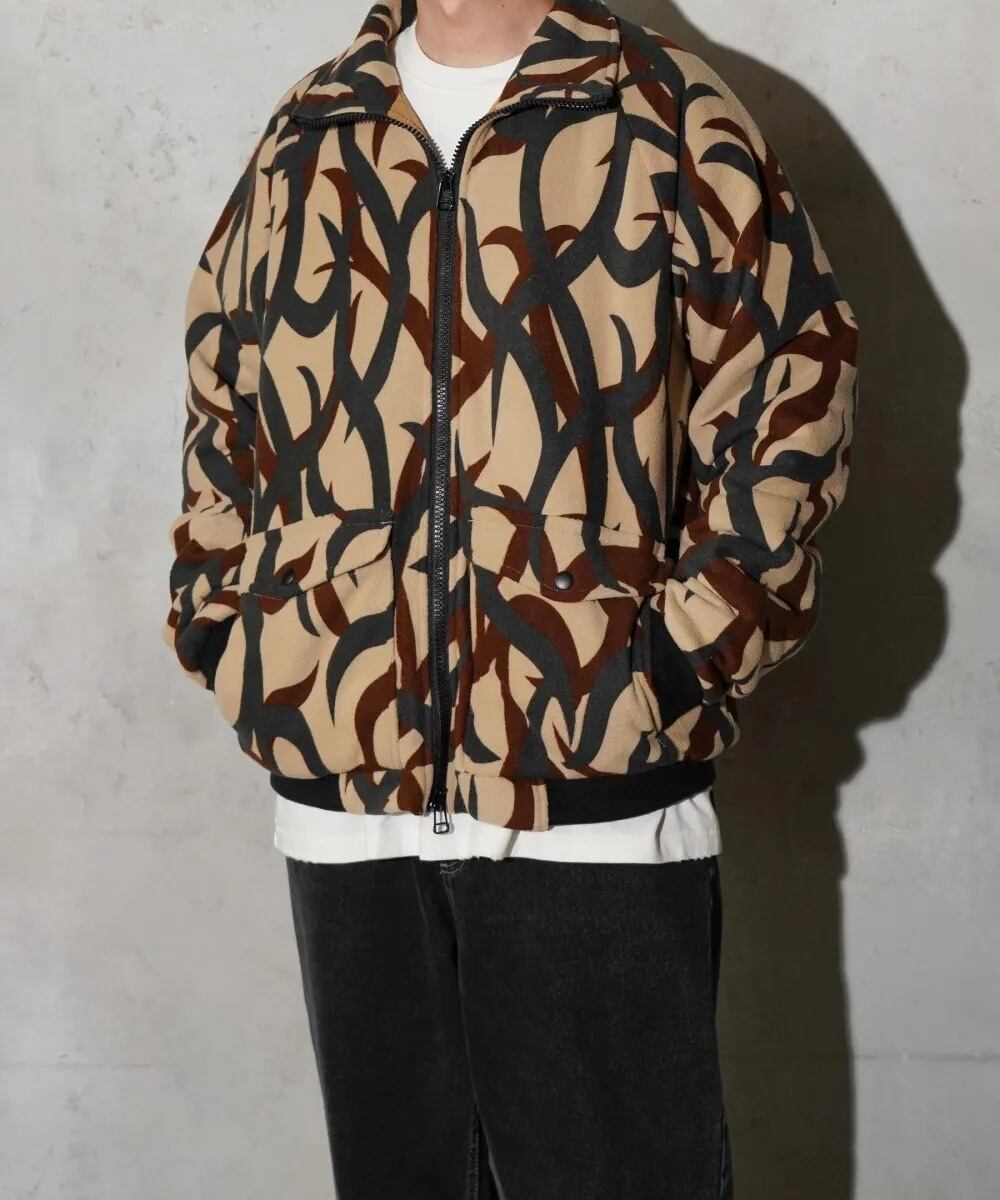 ・表地にはトライバルカモがプリントされたフリースを使用