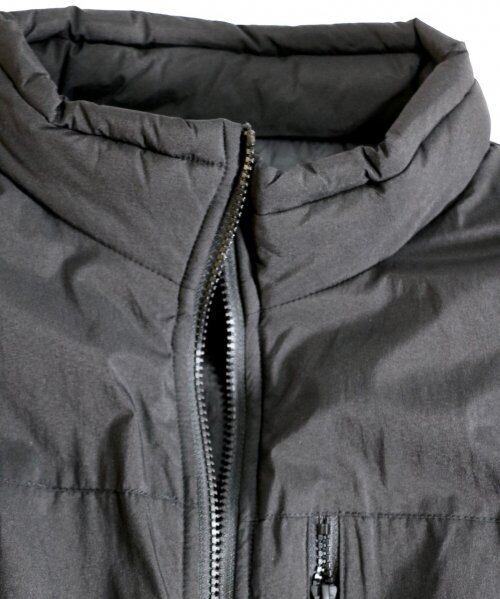 シェルは米国MILLIKEN社製の超撥水ナイロンを、中綿はPRIMALOFT®︎(米国ALBANY社がU.S.Armyのためにスリーピングバッグの中綿として開発した、ダウンの約8倍の暖かさがあると言われているポリエステルを使用したハイテク素材)を使用。ダウンウェアと違い、羽がとびだしたり手入れに手間がかかる事がなく洗濯機で洗えて軽量でやわらかな風合いが特徴です。