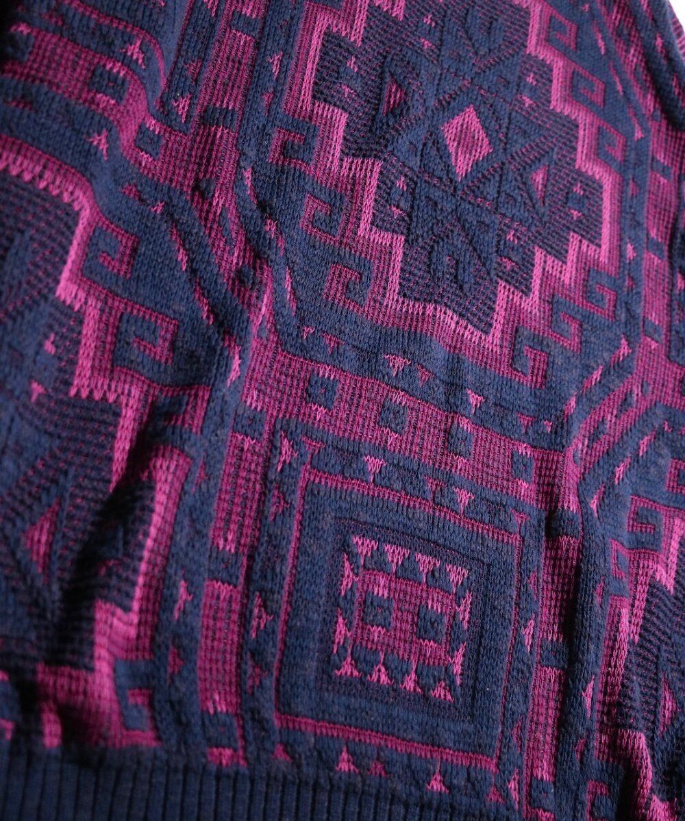 アーカイブのニットを現代風にアップデートしました。シンメトリーなネイティブ柄のクルーネックニット。