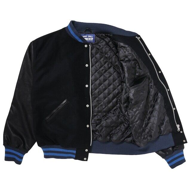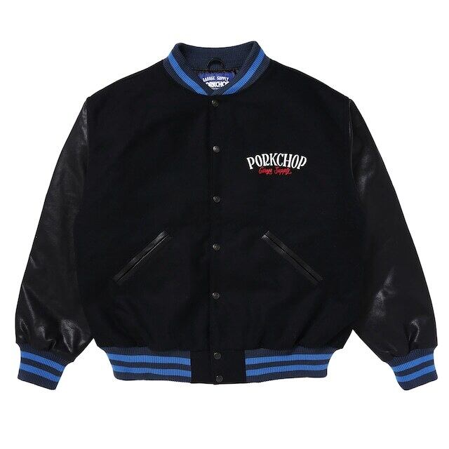 PORKCHOP GARAGE SUPPLY MELTON VARSITY JACKET / BLACK